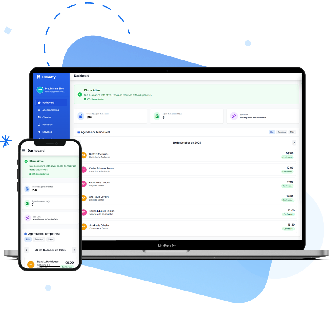 Gerencie seus pacientes, horários e pagamentos em um só lugar, sem planilhas, sem complicação. Comece seu teste grátis de 7 dias e veja como o OdontFy facilita sua rotina.